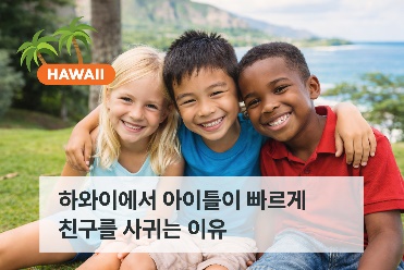 미국 학교 체험이나 스쿨링을 다녀온 부모님들로부터 가장 자주 듣는 말 중 하나는 이것입니다. “영어는 잘 못하는데, 친구는 정말 빨리 사귀더라고요.” 특히 하와이에서는 아이들이 생각보다 훨씬 빠르게 교실 안으로, 친구들 사이로 스며듭니다. 그 이유는 단순히 영어 때문이 아닙니다.